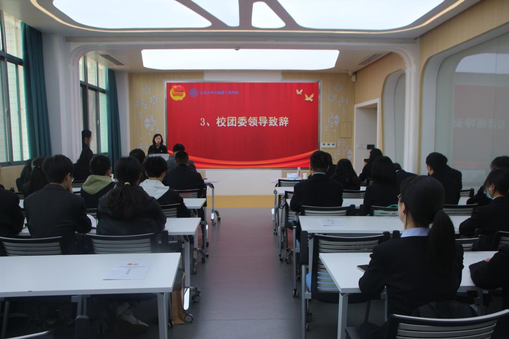 史志洪代表学院党委作主题为《矢志不渝踔厉奋进,为实现“中国梦”贡献青春力量》的讲话。他肯定了学院共青团工作在思想引领、社会实践、志愿服务、科技创新等方面取得的成绩,也对广大团员青年提出了三点希望:共青团组织发挥积极作用,奋发有为,服务青年成长和学校发展;广大团员青年践行新思想,锤炼品格,以实际行动向党组织靠拢;广大团员青年坚定理想信念,志存高远,勇担时代赋予的重任。