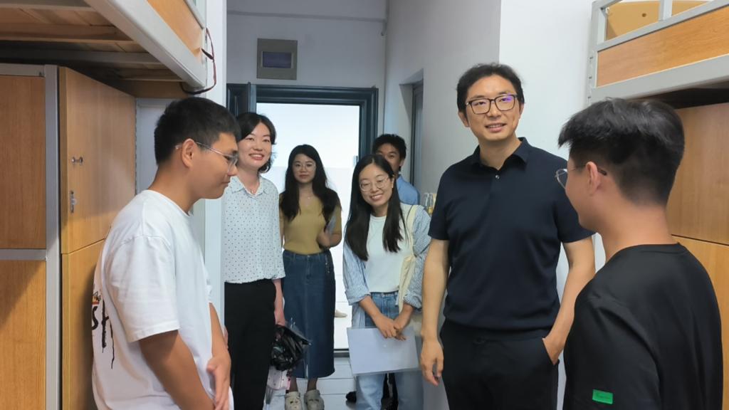 学院上下高度重视迎新工作,学院领导班子统筹规划、精心筹备。为了更加深入了解新生们的入学情况,当天上午,副校长倪松涛、学生工作部部长周伟涛等一行人来到学院指导新生报到相关工作。领导们与报到的同学及家长进行亲切交流,了解学生报到情况,给新生们送上了最温暖的问候和殷切的期望。下午,生科院院长尹建、党委副书记蒋艳、新生班主任、辅导员老师等一行人来到新生宿舍,全面细致地了解了同学们到校后的生活情况,对学校生活是否适应习惯,同时,也详细解答了新生关注的相关问题。最后,院领导们也对各位新同学提出了期许与鼓励,希望同学们珍惜校园时光,努力成长成才。