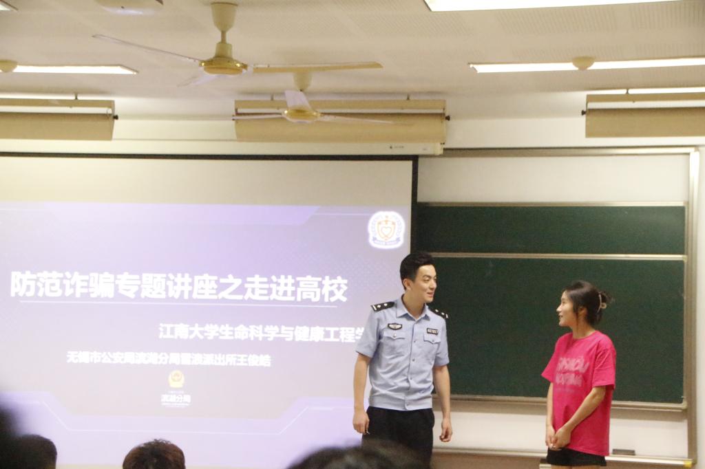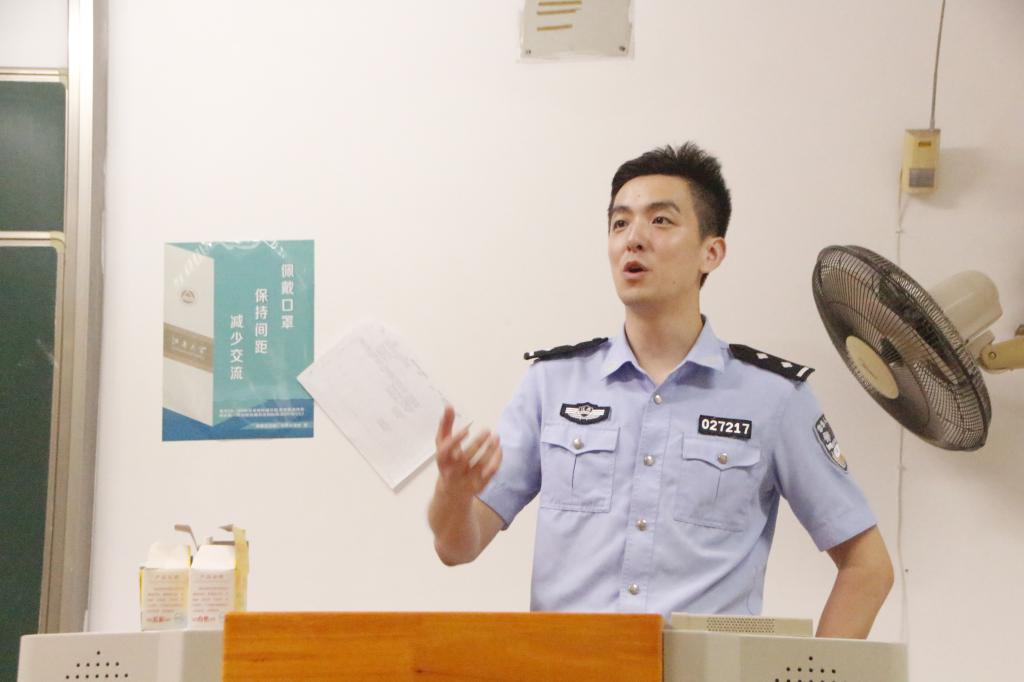 首先,王俊皓警官以什么是电信网络诈骗引入,结合往年江大学生被骗真实案例,讲解了反诈宣传活动的重要意义,并提醒同学们网络诈骗离我们并不遥远。