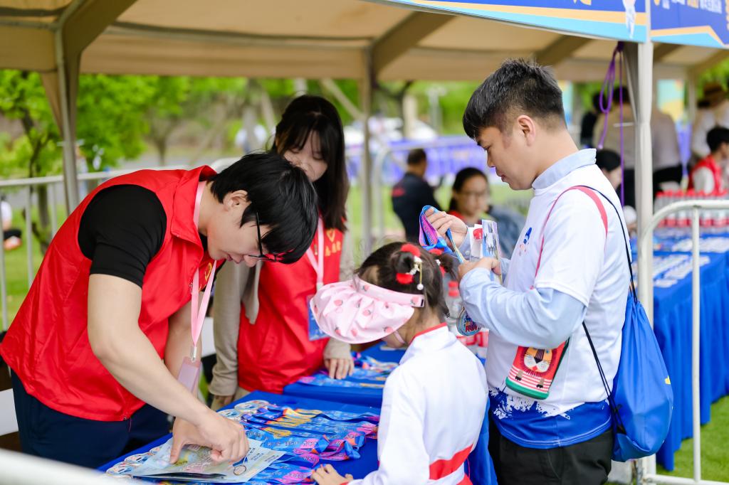 活动前夕,专业老师为志愿者们讲解乐跑活动整体流程、志愿服务礼仪规范、打卡点任务及安全自护等岗前培训。课堂上,志愿者们聚精会神,不时拿起手中的笔记录下要点。4月27日上午6时,冒着微凉的风,70位江大志愿者便已整装待发,坐上了前往工作岗位的大巴。到达主会场后,志愿者们便第一时间投入工作状态。发令枪响,乐跑活动正式开始,本次活动为增加趣味性,共设立3条线路,并分布跨越障碍、童趣赛车、国潮投壶等15处打卡点。随着选手们陆续进场,志愿者们也变得更加忙碌起来,分发补给、维持秩序、打卡点服务、发放奖牌……在乐跑活动的各个角落,都可以看到“马甲红”忙碌的身影,让选手们在享受运动的同时也能感受到贴心的关怀。