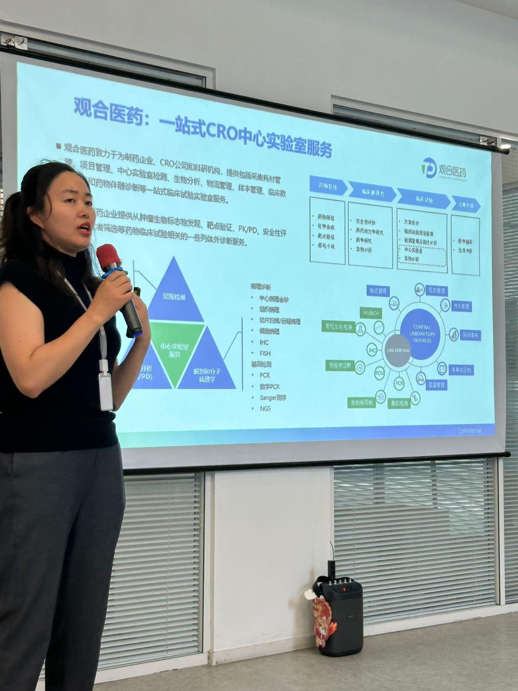 观合医药是一家国内知名的临床研究实验室企业,致力于为制药企业、CRO公司和科研机构,提供一站式CRO中心实验室服务,为创新药企业提供从肿瘤生物标志物发现、靶点验证、PK/PD、安全性评价、受试者筛选等药物临床试验相关的一系列体外诊断服务。在观合医药,师生一行实地参观企业的工作环境和研发实验室,了解企业的主业布局、价值理念、战略目标以及对人才的“之”字形职业发展路径规划和一专多能的“π”型人才培养需求。