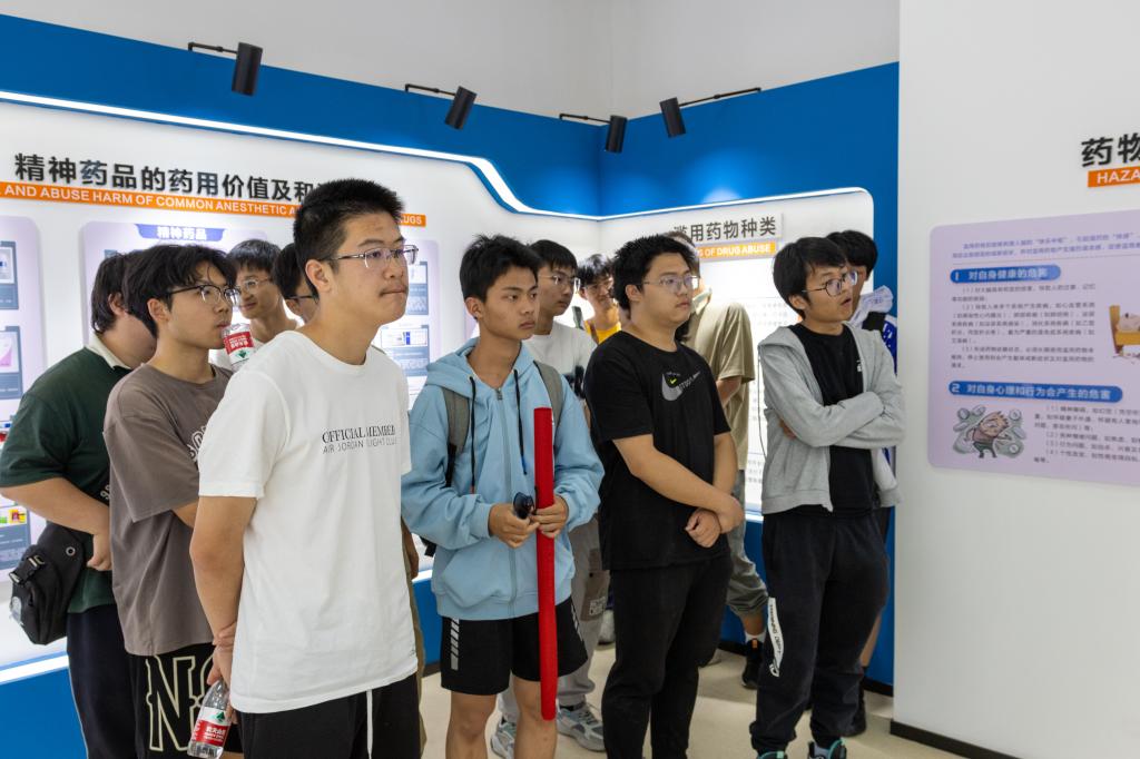 接下来,师生们参观了不良反应展厅,在展厅内,通过生动的案例展示,大家加强了对药品不良反应的认识,还了解了一些常见麻醉、精神药品的药用价值及滥用危害并参与了毒品分类的小游戏。在工作人员的引导下,大家深入了解药品不良反应监测的重要性、监测流程以及监测结果的应用,同学们对药品监管工作的科学性和严谨性有了更深刻的理解。