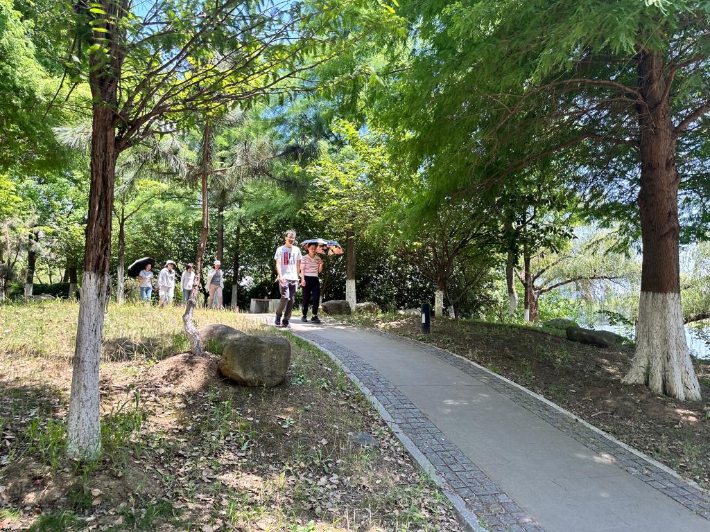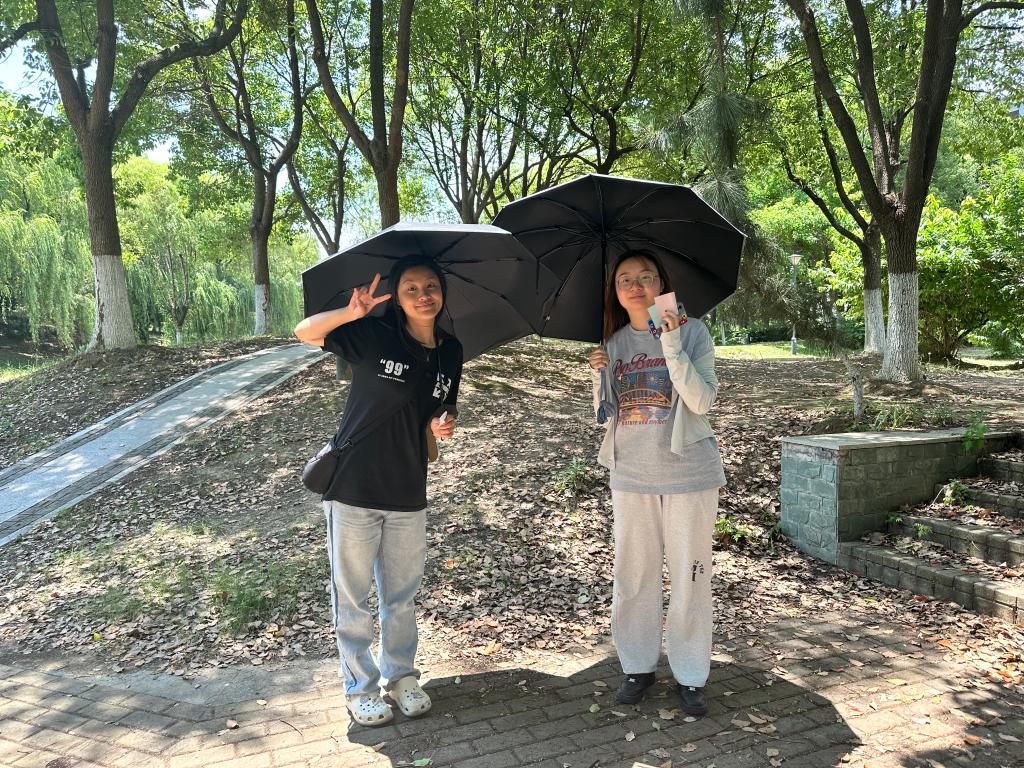 爱晓亭边,湖光映青瓦,荷花别样生。微风徐徐中,2023级硕士生杨松帆同学感叹这“四面清风起,一亭闲云归”的闲适与阔达,她表示走进自然最能缓解生活和学习中的压力,笑容在阵阵脚步中穿梭,力量在满腔热忱中凝聚。