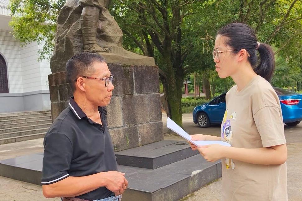 在葛源革命烈士纪念馆内,实践团采访了革命烈士邱金辉的孙子邱爱武。在听到邱金辉烈士遭受酷刑,被刽子手“点天灯”杀害,临死前依旧正气凛然地高呼:“杀吧,杀死我一个,杀不绝共产党人,革命一定会胜利!”的事迹时,在场的实践团成员无不为之动容,对他肃然起敬。“从小就听家里的长辈说起过爷爷的革命故事,知道他为人民的解放事业献出了年轻而宝贵的生命。作为他的后代,更要弘扬他的精神,践行我们父子两代为爷爷和其他英烈‘守灵’的承诺。”邱爱武寄语实践团成员们,应当铭记历史,珍惜来之不易的幸福生活,把革命精神内化于心、外化于行,努力学习科学文化知识,以实际行动践行初心使命。