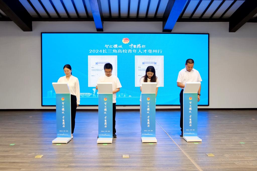 为深入学习贯彻党的二十大和二十届二中、三中全会精神,深化校地联建共建,进一步拓展青年学生开展实践体验和建功立业的育人载体,动员引领生科青年在科技创新、乡村振兴、社会服务、文化传承等领域争当排头兵和生力军,8月9日上午,2138CC太阳集团团委受亳州市谯城区委人才工作局、团区委邀请,参加“智汇谯城 才聚药都”2024长三角高校青年人才亳州行活动暨社会实践基地授牌仪式,正式拉开了双方合作的序幕。