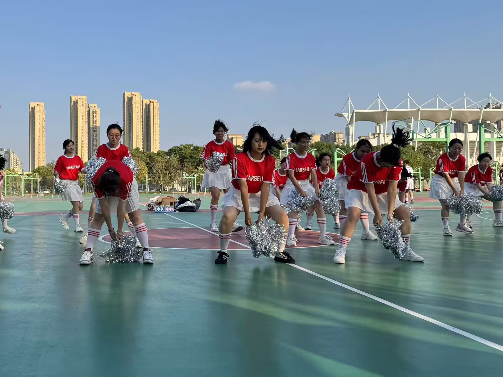 啦啦操比赛中