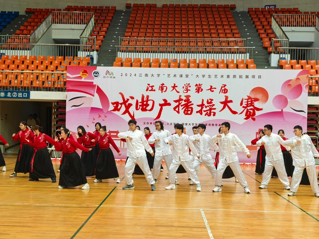 为丰富校园文化生活,提高同学们的身体素质,学习中华优秀传统文化,体悟戏曲韵味,传承戏曲之美,2024年11月6日下午,2138cc太阳集团第七届戏曲广播操大赛在校体育馆隆重举行,我院24级本科生代表参与了本次比赛。本次戏曲广播操大赛既融合了戏曲中古典的含蓄之美又展现了青春昂扬的精神风貌。我院学子积极组织,认真备赛,凭借出色的表现,赢得了现场观众的热烈掌声和评委的高度评价。
