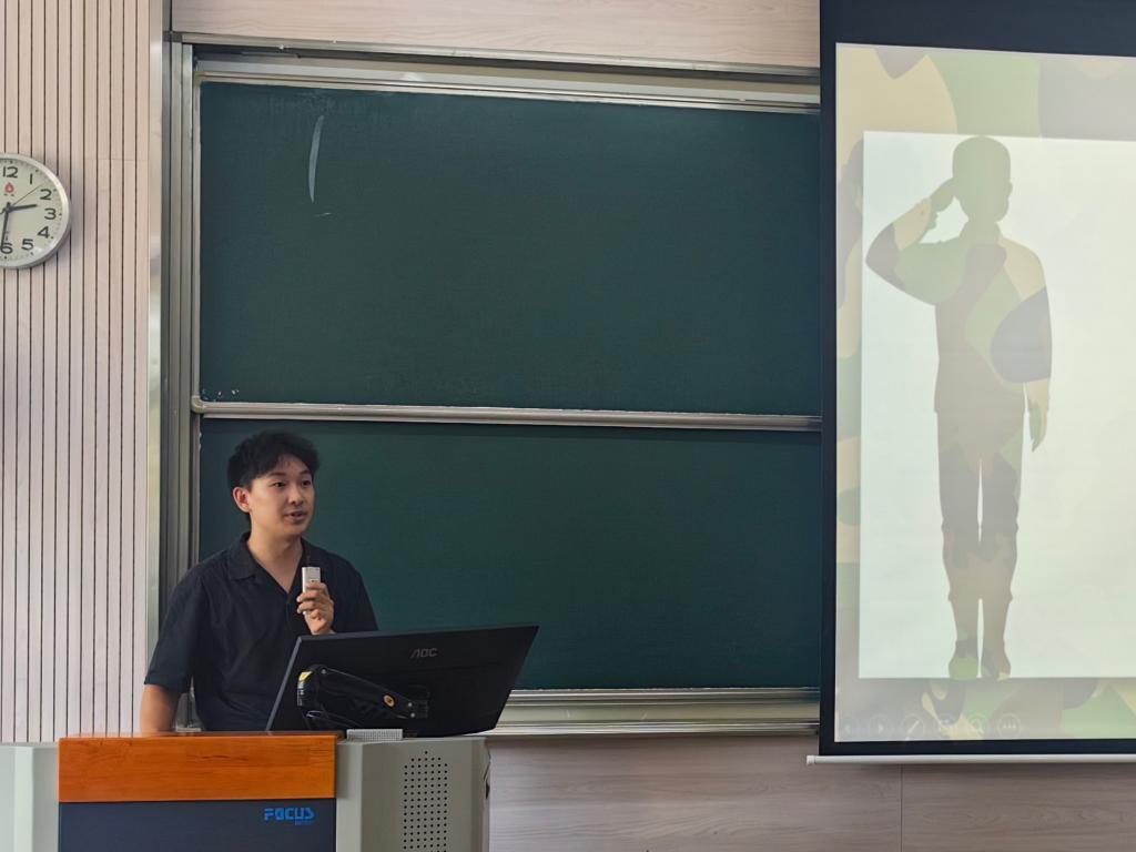 张世祺就军训相关安排为新生作了系统而细致的说明。他详细介绍了本次军训的主要内容、日程安排、考核方式与纪律要求,帮助同学们清晰了解整体安排、明确各阶段任务。在讲解过程中,他还贴心分享了许多实用提示,包括健康防护、物品准备、作息调整以及应急处理等细节,叮嘱大家提前做好身心准备。这些“干货满满”的建议,不仅体现出学院对同学们的深切关怀,也为新生从容应对军训生活、顺利完成训练任务提供了切实保障。