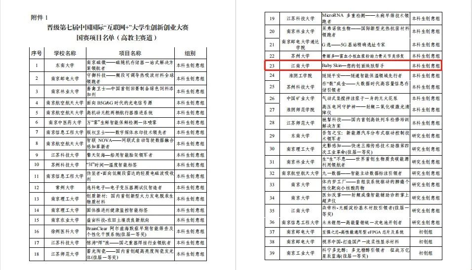 8月22日至24日,“建行杯”第七届中国国际“互联网+”大学生创新创业大赛江苏省选拔赛暨第十届江苏省大学生创新创业大赛决赛在南京邮电大学仙林校区隆重举办。受疫情影响,本次比赛小组赛和排位赛均通过线上路演形式进行。我院陈敬华教授、周娟副教授以及商学院的裴佳音老师共同指导的本科生参赛作品《Baby Skin—新一代创面修复仿生皮肤》荣获省赛一等奖,并顺利入围国赛。