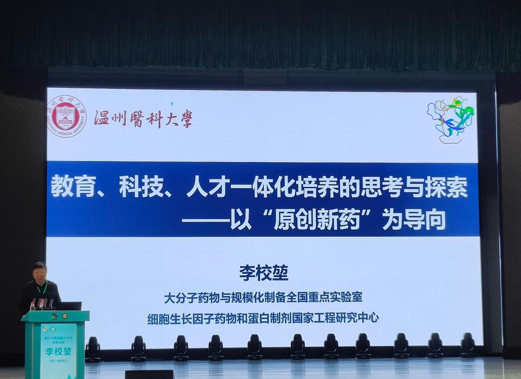 论坛开幕式上,竞赛组委会主任、中国工程院院士、温州医科大学校长李校堃发表致辞,他强调,2024年《政府工作报告》将创新药列为积极培育的新兴产业之一,释放出创新药发展的利好信息,作为医药院校要紧抓机遇,准确把握药学事业发展形势;作为药学类学子,要尽快融入到药学发展的洪流中来,不断开拓进取,主动肩负起科技强国的重任。随后,李校堃院士作了题为《教育、科技、人才一体化培养的思考与探索——以“原创新药”为导向》的学术报告。