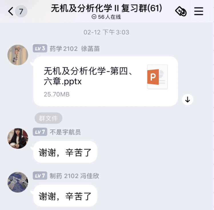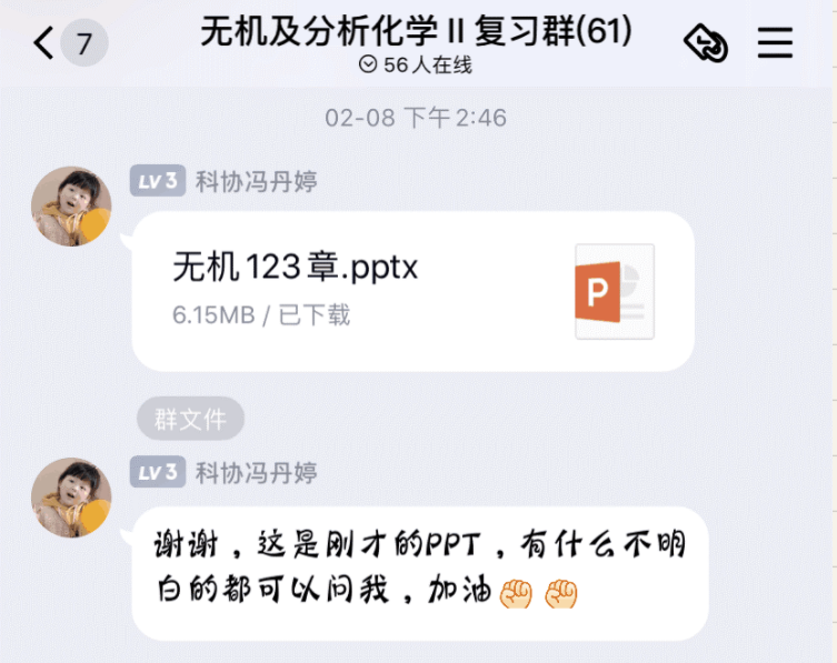 年初,我有幸进行了无机化学前三章的分享,让我收获颇丰。首先,知识点的整理需要划分出重点内容,我认为概念要理解着记忆,所以我理出了记忆部分,然后根据期末考点逐一解释,对问题能进行更好的解答;其次,PPT的制作增加了我对使用软件的熟悉度,我也在制作过程中掌握某些功能的应用。最难忘的还是直播时的分享,让我深刻体会到语言讲解的重要性,是值得在大学不断进步的。这次经历对我来说既是一种体验也是一种锻炼,我在整个过程中尝试到第一次突破的激动,体会到互帮互助的愉悦,这会是我大学期间深刻的一段经历。