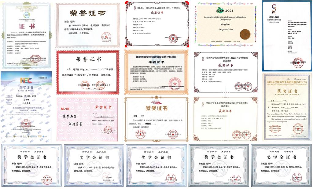 “我还记得在大一入学的班会上,孙莹就向班主任纪倩老师提问,如果今后想要从事科研,本科期间应该做出哪些努力。当时我们听到这个问题都很好奇,也有点惊讶。”徐欣蕊如是说。大学四年,孙莹稳中求进,52门课程满绩,综合测评稳居专业第一,积极参与科创训练并尽全力做好做精,连续两年参加全国大学生生命科学竞赛,实现从参与人到队长的角色转变,带领团队获国赛三等奖、江苏赛区二等奖的优异成绩;在国际遗传工程机器竞赛(iGEM)中,担任团队实验组组长,做好宏观的进度规划和具体的落实跟进,保障实验的质量和效率,最终斩获iGEM铜奖,通过坚持不懈的努力,向着入学时的梦想稳步前进。