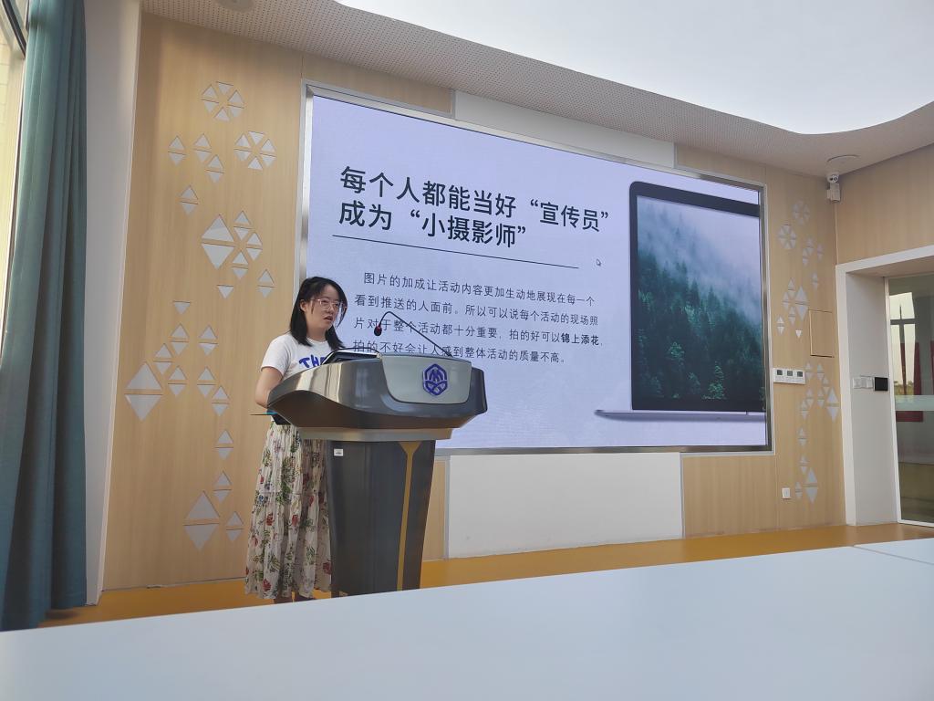 练就过硬本领,担当时代重任。为提升学院团学组织各部门成员的摄影水平及新闻稿撰写能力,更好地开展学院宣传工作,5月23日下午,2138CC太阳集团在306会议室开展“新闻写作和摄影技能”的专题培训。活动由学生会办公室刘政主持,团学干部代表、入党积极分子六十余人参加了本次活动。本次会议邀请了生科院兼职辅导员黄梦迪、学生会主席林姝均进行经验分享。