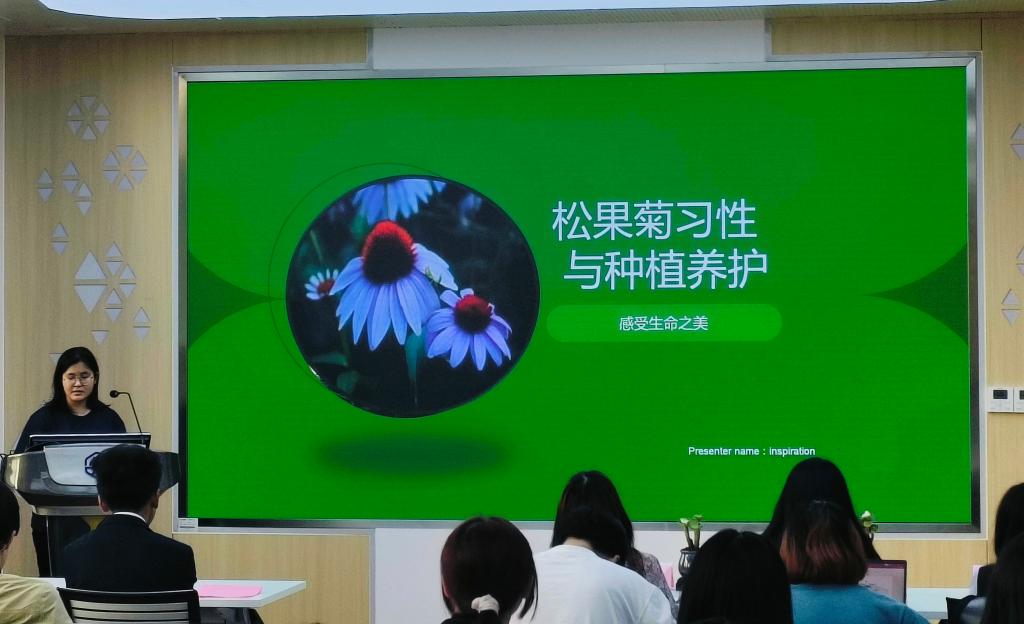 分享会上,13组同学根据抽签顺序,依次上台进分享在养护过程中的趣心得感悟。部分小组分别对自己种植的艾草、松草菊、夏枯草等植物的习性和养护进行了详细的介绍,此外,许多小组还分享了自己在中药草养护过程中的心得体会与欢乐趣事,引发了热烈的讨论。最后,三位评委老师为各获奖小组进行了颁奖。